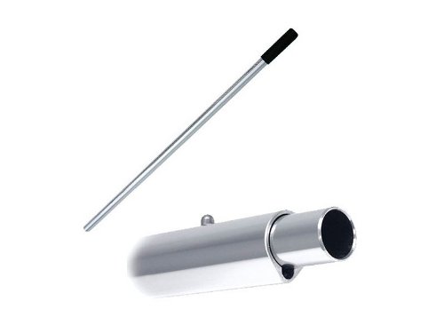 Unique telescoping pole with track system that eliminates searching for the hole with the snap button. Ergonomic design allows for a more comfortable grip and a stronger pole.