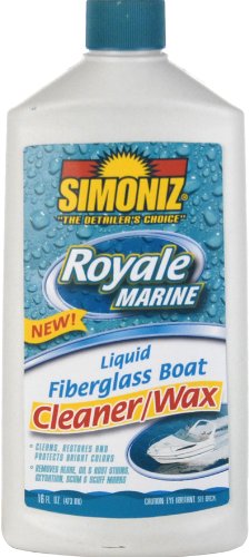 "Simonize Liquid Fiberglass Boat Cleaner/Wax 16Oz. Non-abrasive liquid formula. Cleans, polishes, and protects. Removes algae, oil and rust stains. "